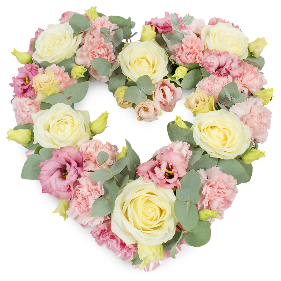 Our Pure Elegance Tribute Bouquet is a stunning expression of love and remembrance. This exquisite arrangement features white roses, pink carnations, pink lisianthus, and eucalyptus leaves, artfully combined to create a graceful and meaningful display.